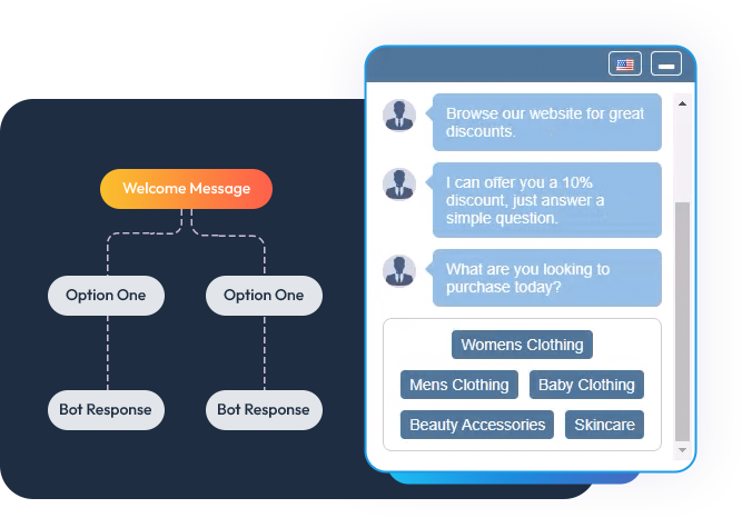 Create engaging customer journeys and chat flows from scratch, letting users answer questions, make choices, click buttons, and earn rewards instantly.